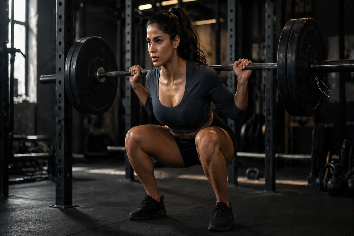 • Barbell squats — 3 sets × 10–12 reps, 60–90 sec rest